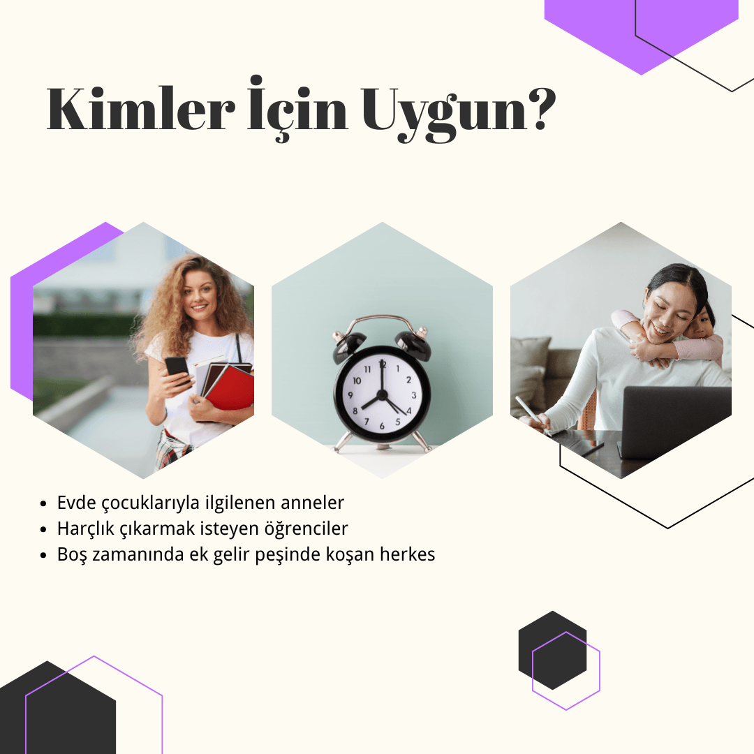 Zaman ve Mekan Özgürlüğü: İster tam zamanlı bebek bakımıyla ilgilenen bir anne olun, ister okuyan bir öğrenci, istediğiniz zaman ve yerde çalışabilirsiniz. İşinizi kolayca yönetmek için tek ihtiyacınız olan bir akıllı telefon.